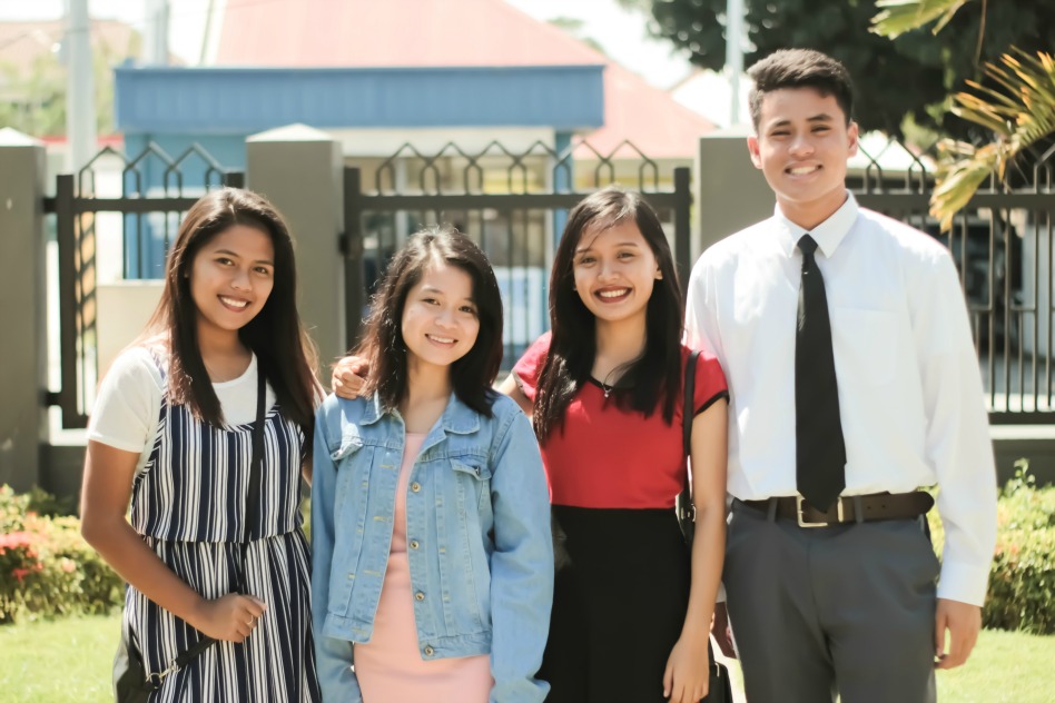a group of youth in front of a chapel
